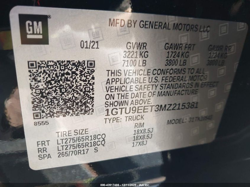 2021 GMC SIERRA 1500 2021 року Дизель, 3.0, Повний привід, vin - 1GTU9EET3MZ215381 з США