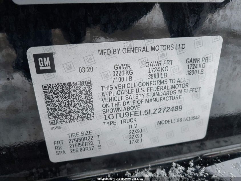 2020 GMC SIERRA 1500 2020 року Бензин, 6.2, Повний привід, vin - 1GTU9FEL5LZ272489 з США
