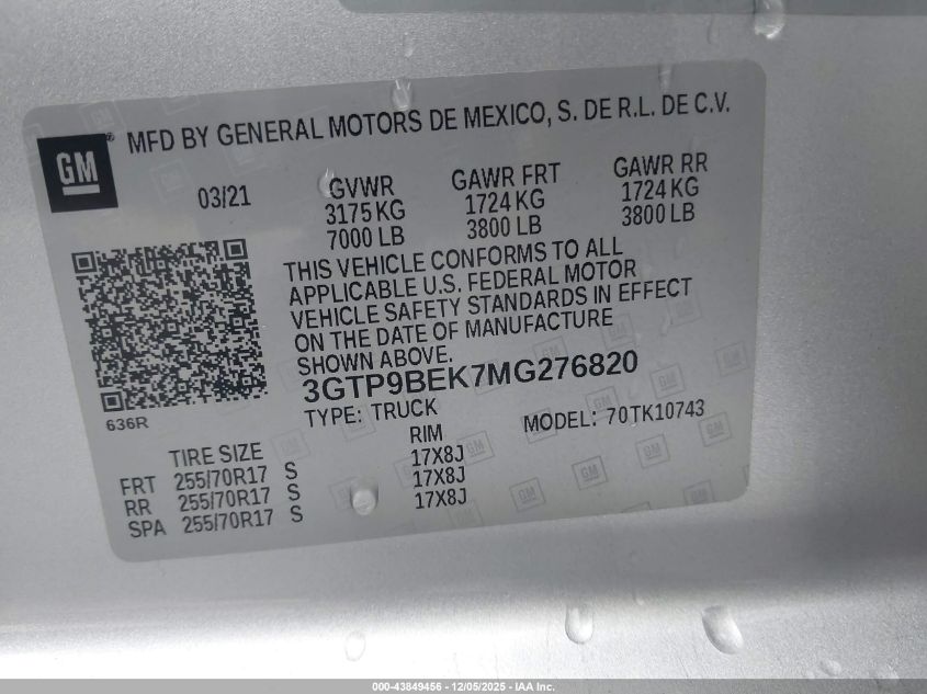 2021 GMC SIERRA 1500 2021 року Бензин, 2.7, Повний привід, vin - 3GTP9BEK7MG276820 з США