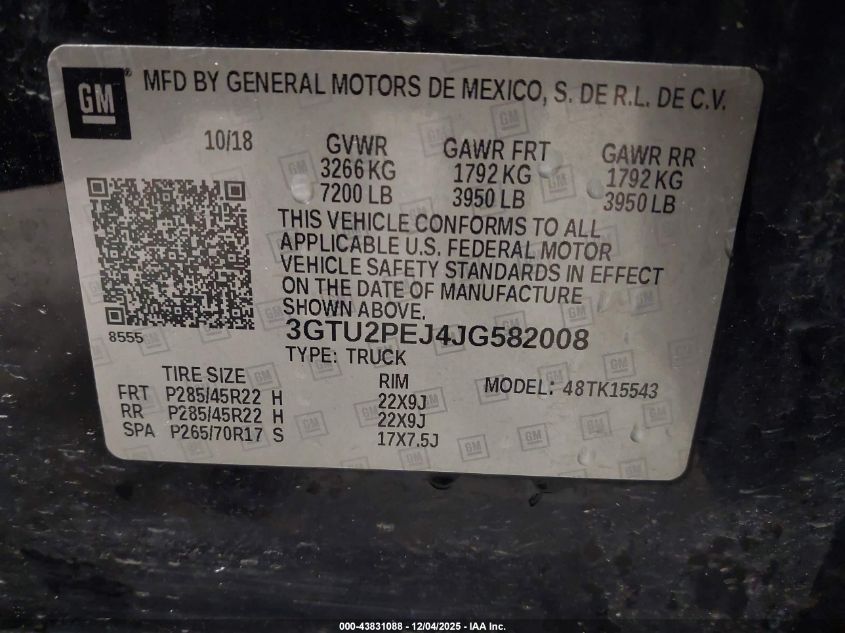 2018 GMC SIERRA 1500 2018 року Бензин, 6.2, Повний привід, vin - 3GTU2PEJ4JG582008 з США