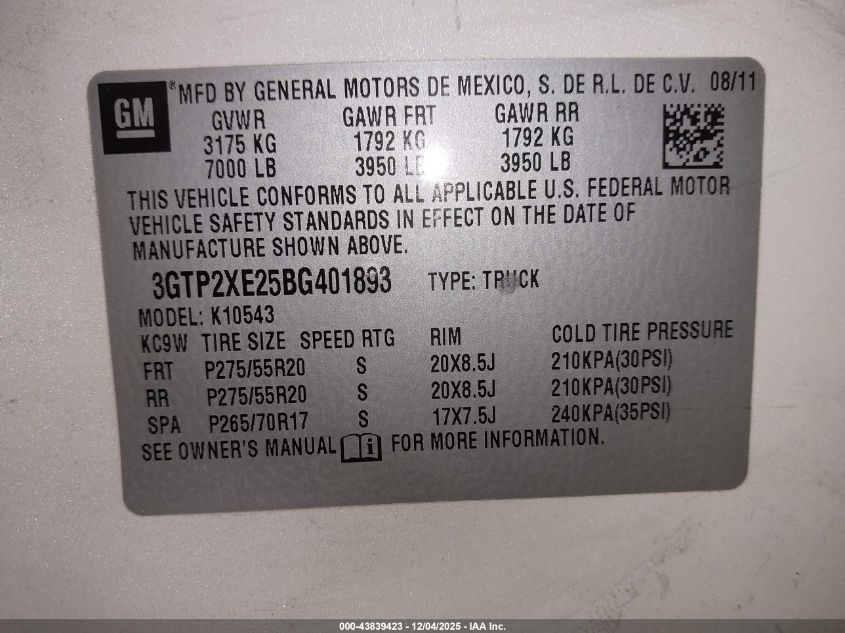 Колір БілийЦиліндри 8Привід Повний привідVIN 3GTP2XE25BG401893Стан Заводиться та їде (перевірено)Ушкодження Передня або задня