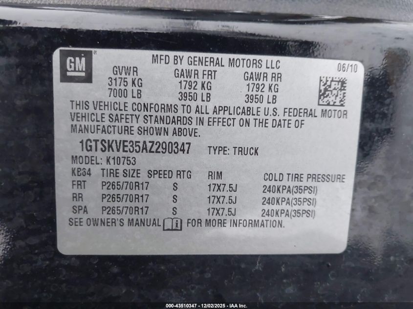 2010 GMC SIERRA 1500 2010 року Бензин, 5.3, Повний привід, vin - 1GTSKVE35AZ290347 з США