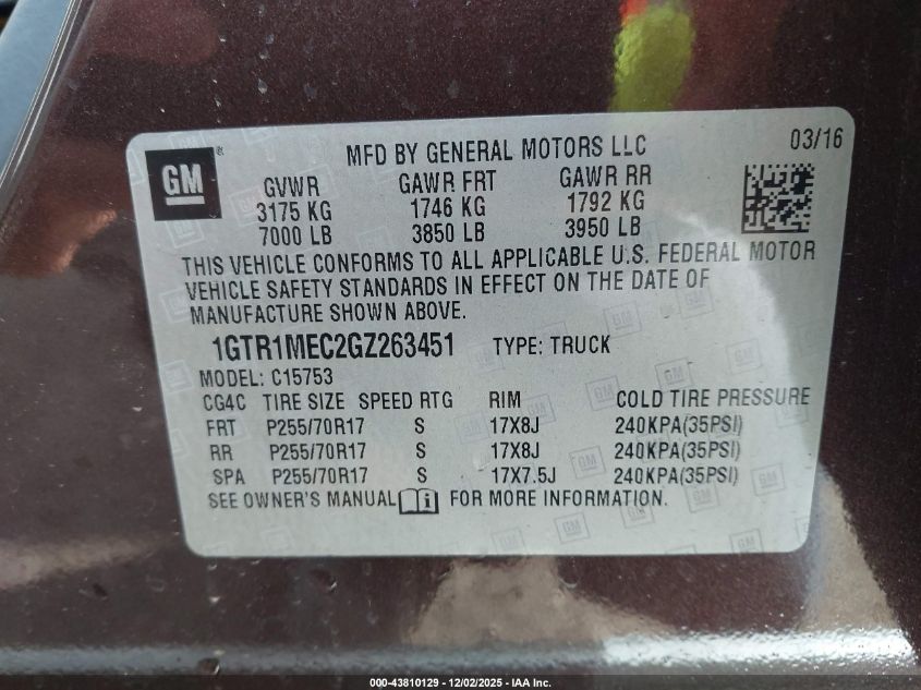 Колір КоричневийЦиліндри 8VIN 1GTR1MEC2GZ263451Стан Заводиться та їде (перевірено)Ушкодження Передня ліва
