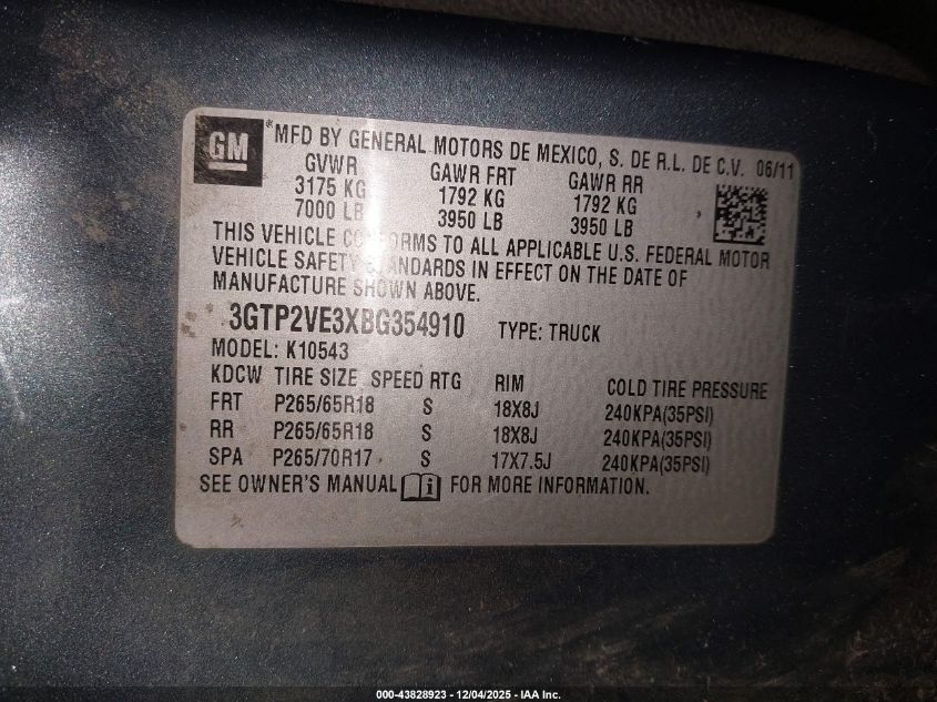 Колір СрібнийЦиліндри 8Привід Повний привідVIN 3GTP2VE3XBG354910Стан Заводиться та їде (перевірено)Ушкодження Передня або задня