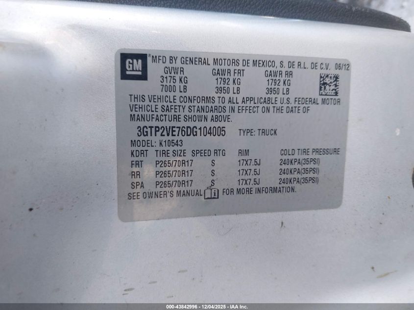 Колір СірийЦиліндри 8Привід Повний привідVIN 3GTP2VE76DG104005Стан Заводиться та їде (перевірено)Ушкодження Передня права