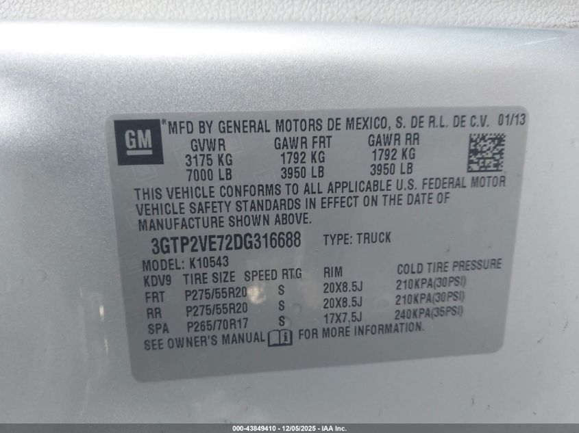 Колір СрібнийЦиліндри 8Привід Повний привідVIN 3GTP2VE72DG316688Стан Заводиться та їде (перевірено)Ушкодження Передня і задня