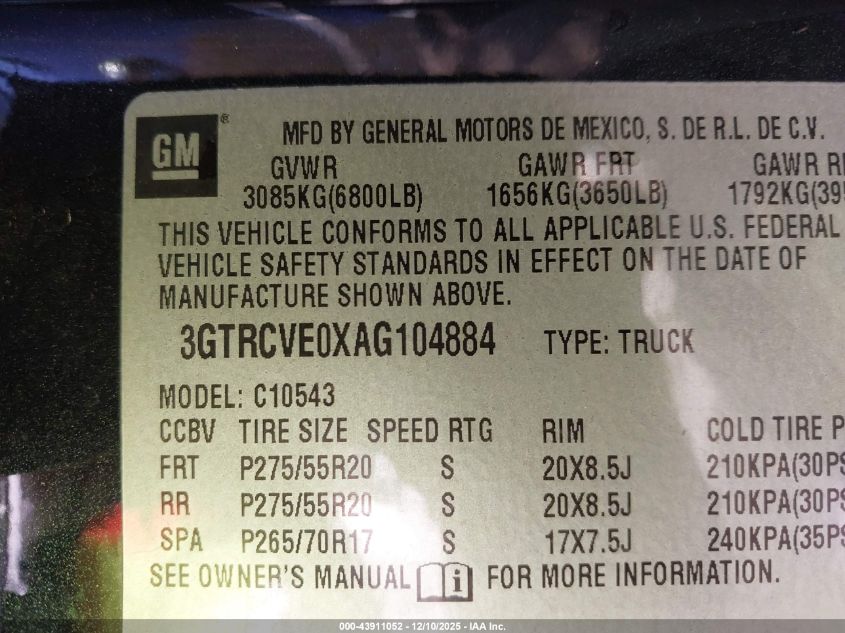 Колір ЧорнийЦиліндри 8VIN 3GTRCVE0XAG104884Стан Заводиться та їде (перевірено)Ушкодження Град