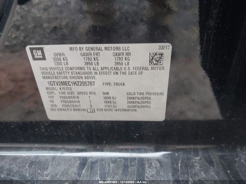 2017 GMC SIERRA 1500 2017 року Бензин, 5.3, Повний привід, vin - 1GTV2MEC1HZ295787 з США