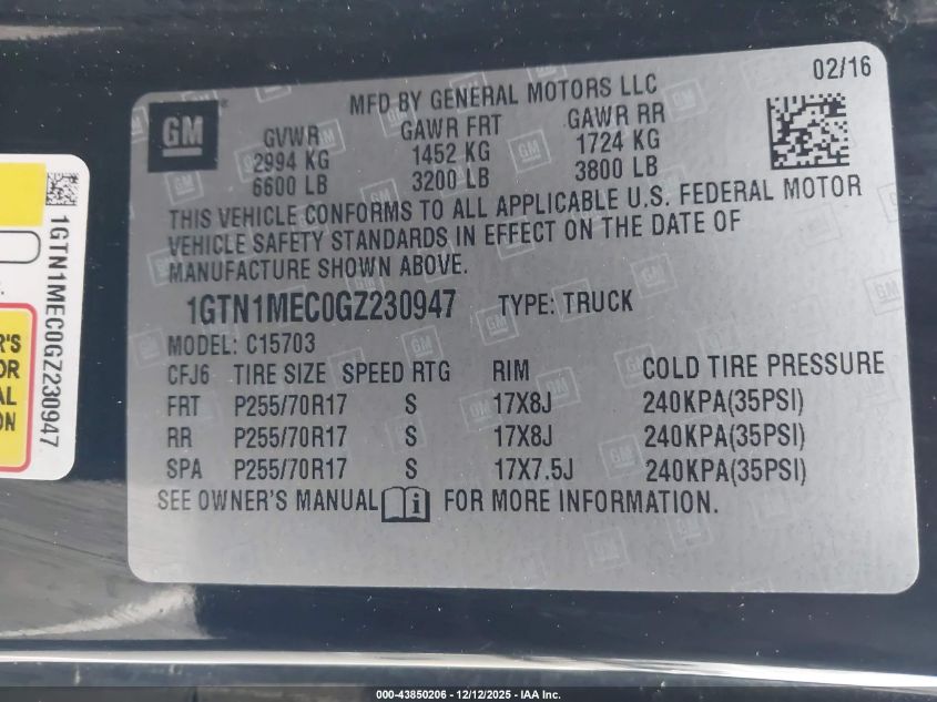 2016 GMC SIERRA 1500 2016 року Бензин, 5.3, , vin - 1GTN1MEC0GZ230947 з США