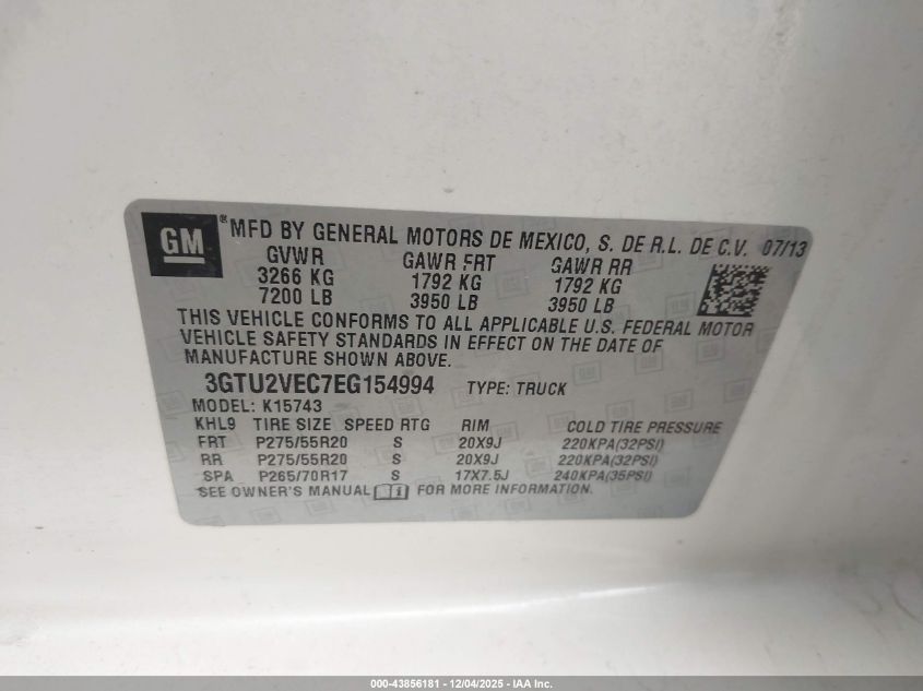 Колір БежевийЦиліндри 8Привід Повний привідVIN 3GTU2VEC7EG154994Стан ЗаводитьсяУшкодження Незначні