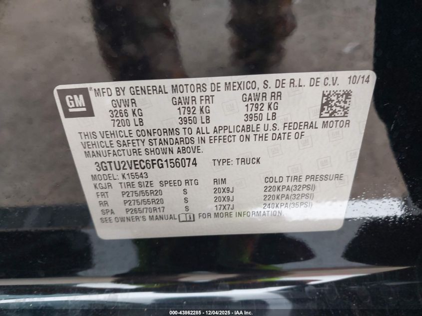 2015 GMC SIERRA 1500 2015 року Бензин, 5.3, Повний привід, vin - 3GTU2VEC6FG156074 з США