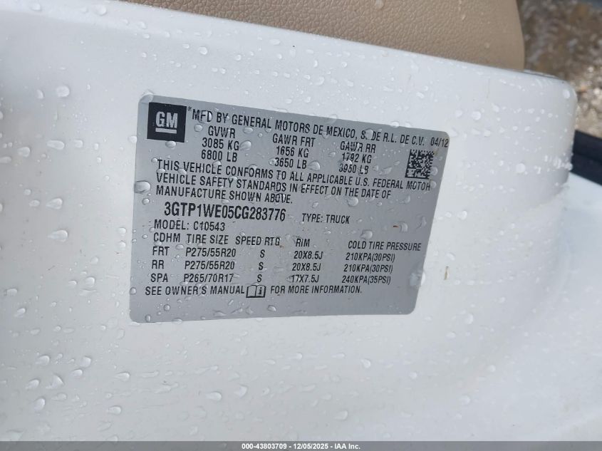 Колір БілийЦиліндри 8VIN 3GTP1WE05CG283776Стан Заводиться та їде (перевірено)Ушкодження Ліва сторона