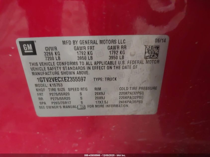 2014 GMC SIERRA 1500 2014 року Бензин, 5.3, Повний привід, vin - 1GTV2VECXEZ355597 з США
