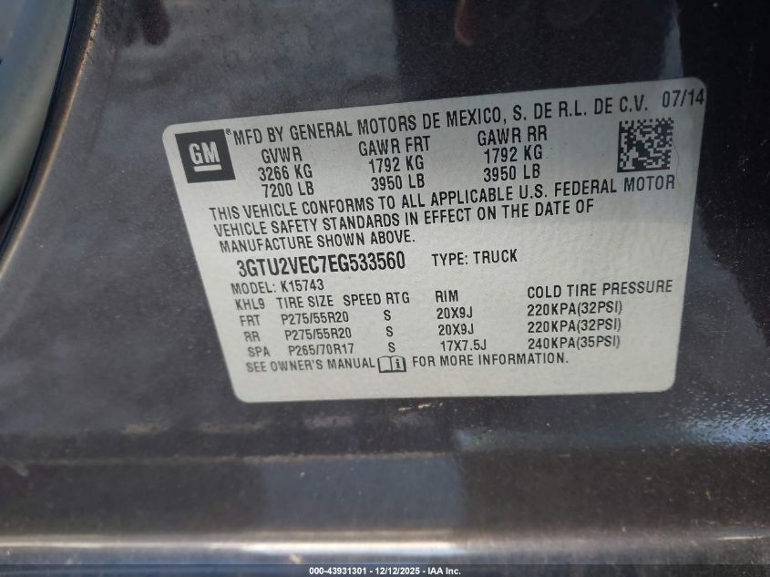 2014 GMC SIERRA 1500 2014 року Бензин, 5.3, Повний привід, vin - 3GTU2VEC7EG533560 з США