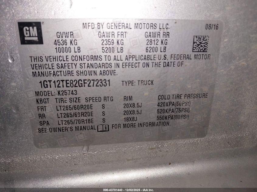 Колір СрібнийЦиліндри 8Привід Повний привідVIN 1GT12TE82GF272331Стан Заводиться та їде (перевірено)Ушкодження Передня або задня