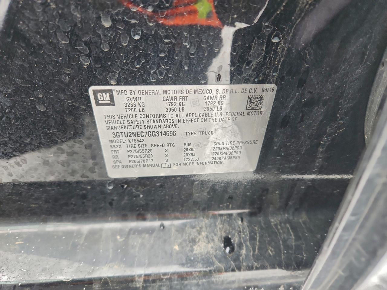 2016 GMC SIERRA 2016 року Бензин, 5.3, 4x4 з заднім приводом, vin - 3GTU2NEC7GG314696 з США