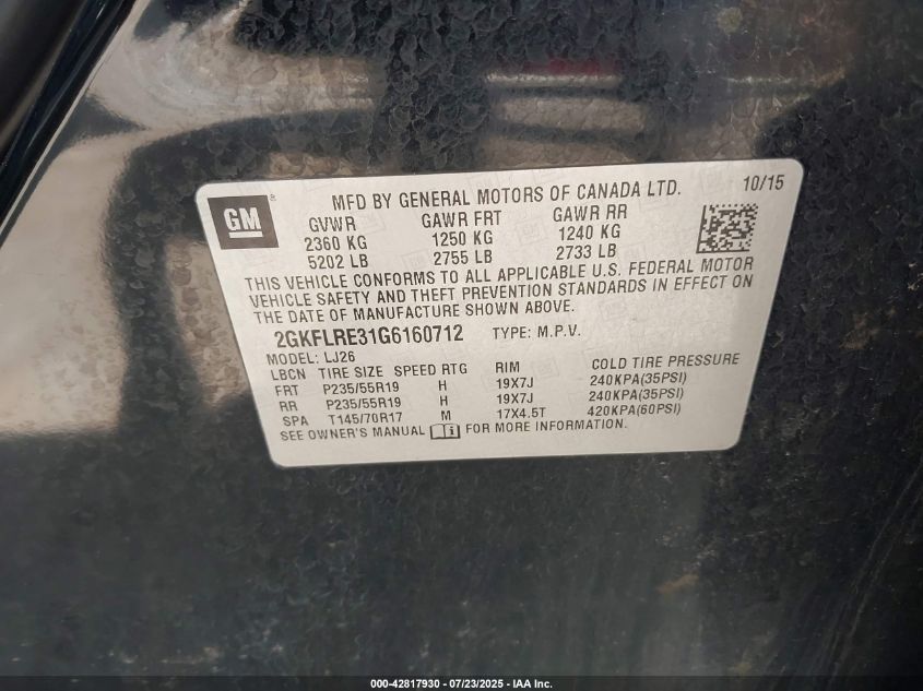 2016 GMC TERRAIN 2016 року Бензин, 3.6, Передній привід, vin - 2GKFLRE31G6160712 з США