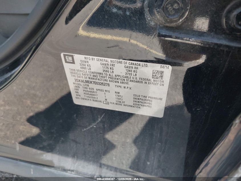 2014 GMC TERRAIN 2014 року Бензин, 2.4, Передній привід, vin - 2GKALMEK7E6326278 з США