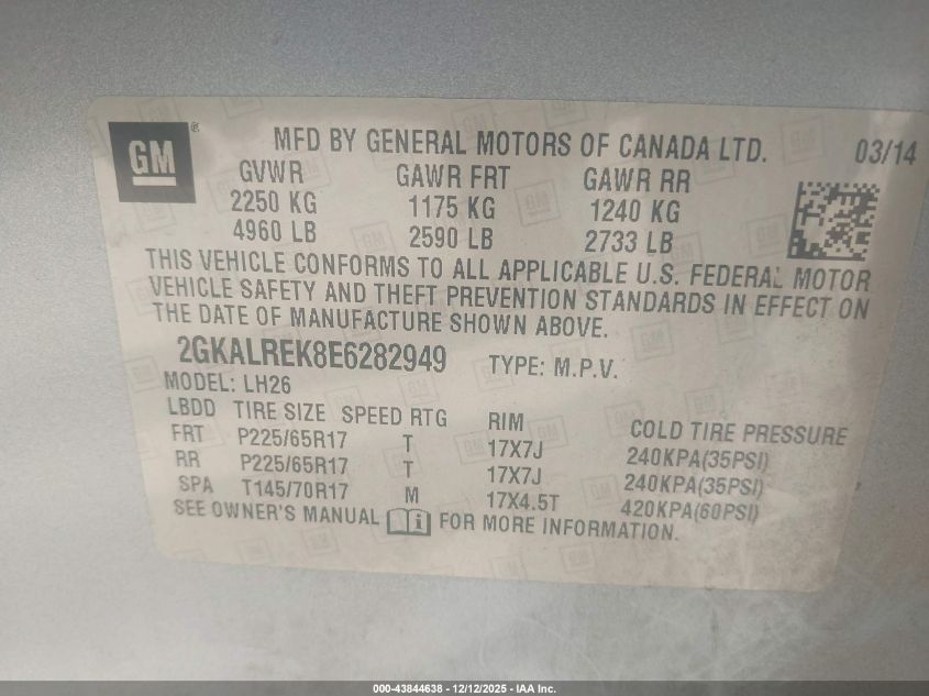 2014 GMC TERRAIN 2014 року Бензин, 2.4, Передній привід, vin - 2GKALREK8E6282949 з США