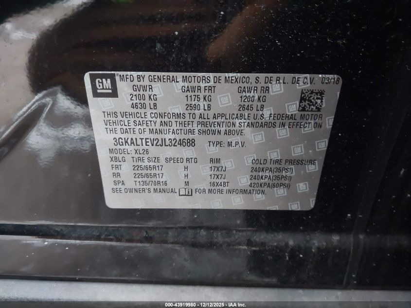 Колір ЧорнийЦиліндри 4Привід Повний привідVIN 3GKALTEV2JL324688Стан Заводиться та їде (перевірено)Ушкодження Передня або задня AutoRIA