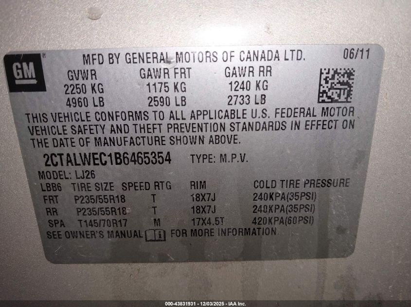 2011 GMC TERRAIN 2011 року Бензин, 2.4, Передній привід, vin - 2CTALWEC1B6465354 з США
