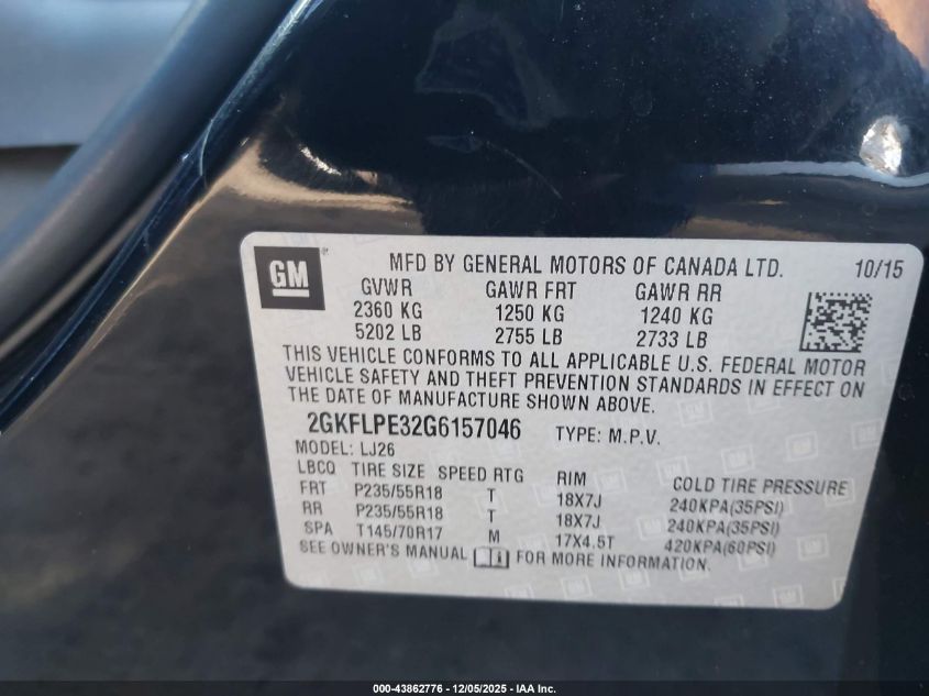 2016 GMC TERRAIN 2016 року Бензин, 3.6, Передній привід, vin - 2GKFLPE32G6157046 з США