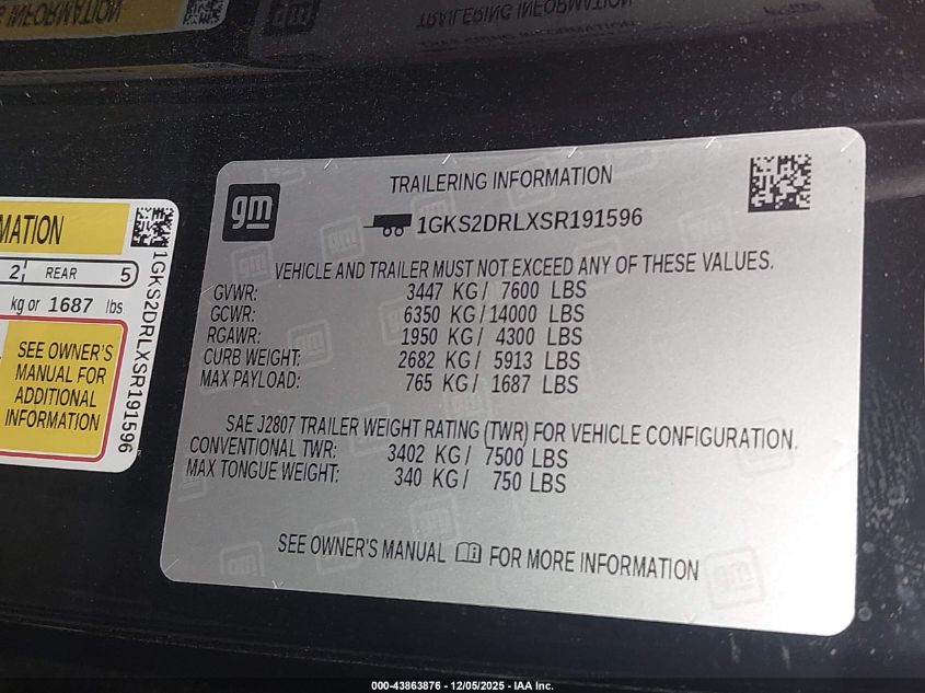 2025 GMC YUKON 2025 року Бензин, 6.2, Повний привід, vin - 1GKS2DRLXSR191596 з США