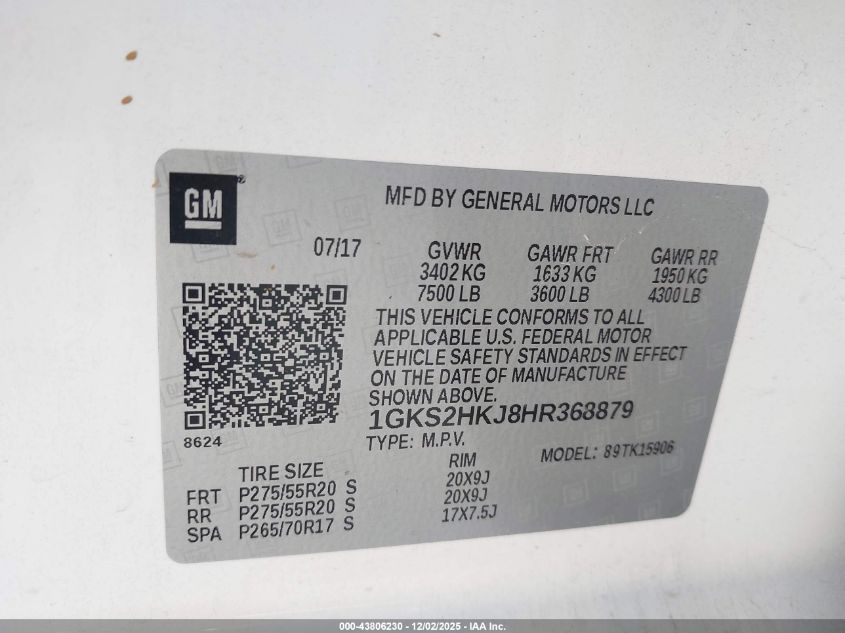 2017 GMC YUKON 2017 року Бензин, 6.2, Повний привід, vin - 1GKS2HKJ8HR368879 з США