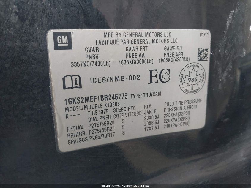 2011 GMC YUKON 2011 року Бензин, 6.2, Повний привід, vin - 1GKS2MEF1BR246775 з США