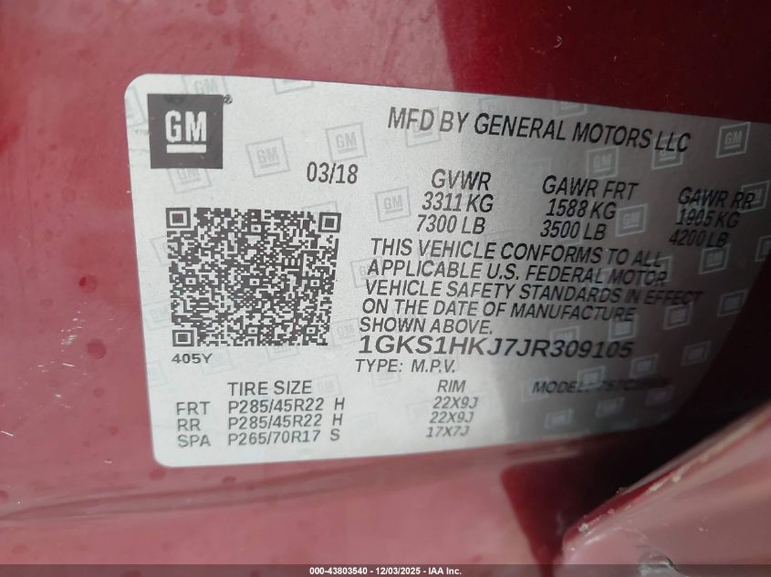2018 GMC YUKON 2018 року Бензин, 6.2, , vin - 1GKS1HKJ7JR309105 з США