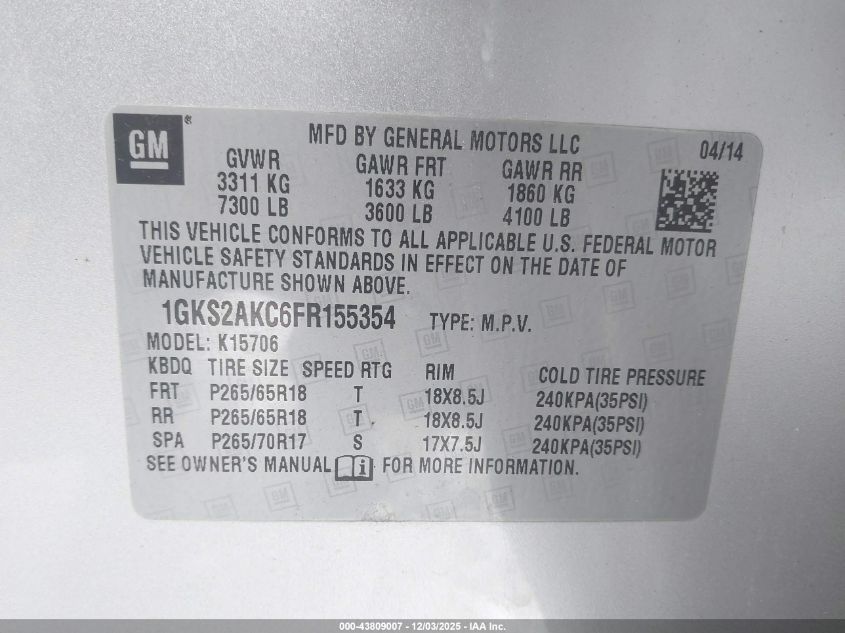 Колір СрібнийЦиліндри 8Привід Повний привідVIN 1GKS2AKC6FR155354Стан Заводиться та їде (перевірено)Ушкодження Ліва сторона