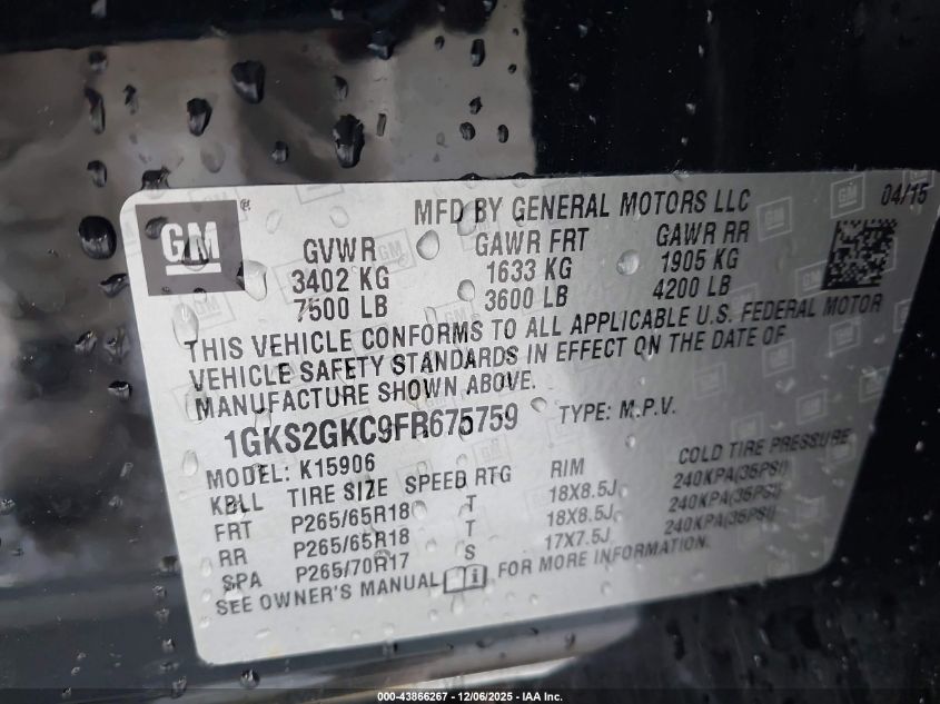 2015 GMC YUKON 2015 року Бензин, 5.3, Повний привід, vin - 1GKS2GKC9FR675759 з США