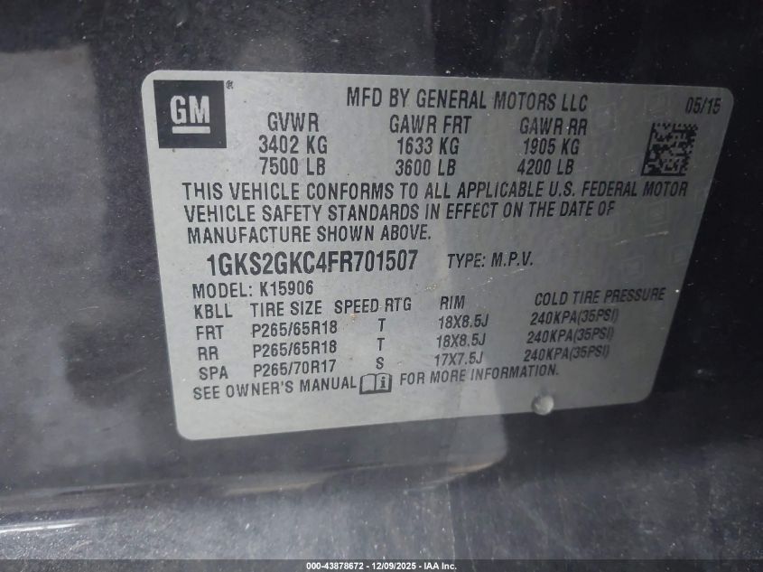 Колір СірийЦиліндри 8Привід Повний привідVIN 1GKS2GKC4FR701507Стан СтаціонарноУшкодження Перекидання