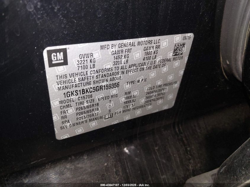 Колір ЧорнийЦиліндри 8VIN 1GKS1BKC5GR159356Стан Заводиться та їде (перевірено)Ушкодження Передня або задня