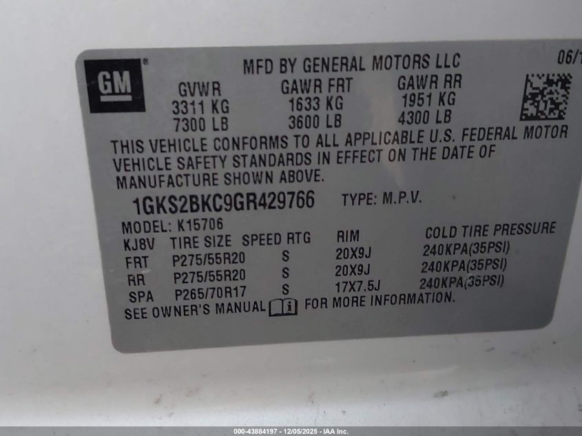 2016 GMC YUKON 2016 року Бензин, 5.3, Повний привід, vin - 1GKS2BKC9GR429766 з США