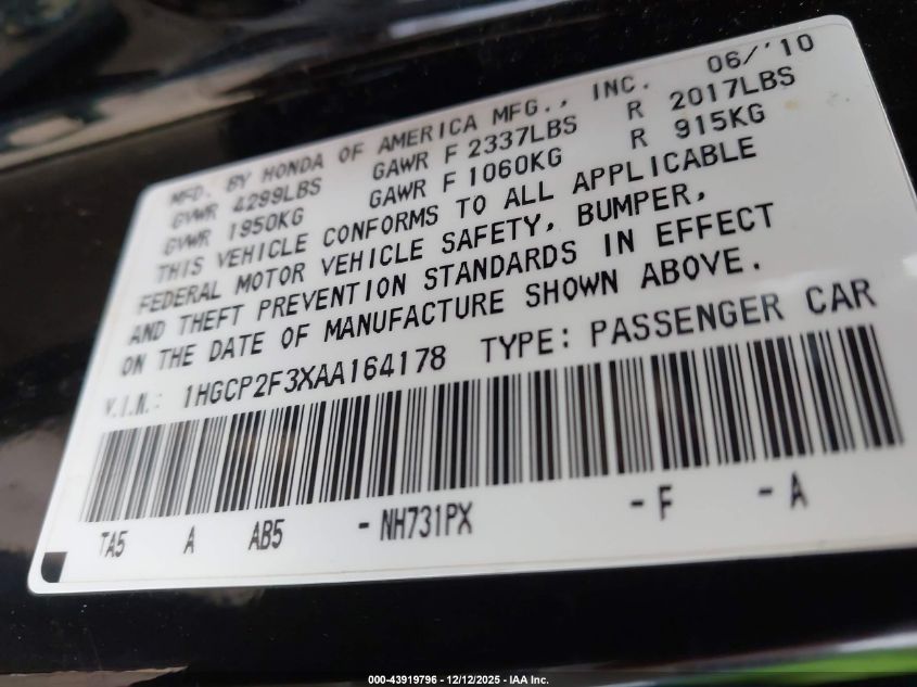 Колір ЧорнийЦиліндри 4Привід Передній привідVIN 1HGCP2F3XAA164178Стан Заводиться та їде (перевірено)Ушкодження Передня або задня AutoRIA