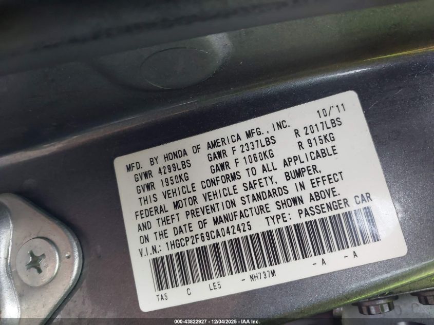 Колір СірийЦиліндри 4Привід Передній привідVIN 1HGCP2F69CA042425Стан Заводиться та їде (перевірено)Ушкодження Передня або задня AutoRIA