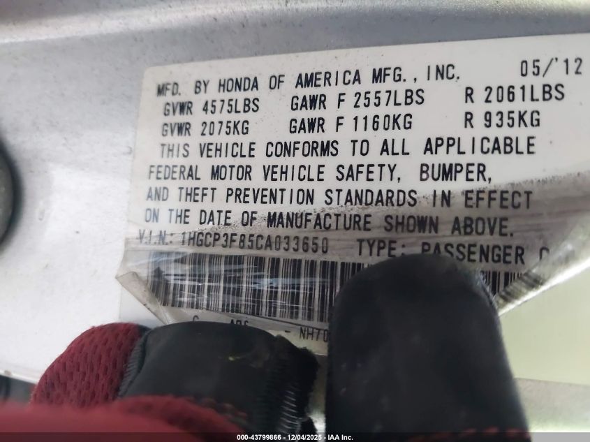 2012 HONDA ACCORD 2012 року Бензин, 3.5, Передній привід, vin - 1HGCP3F85CA033650 з США