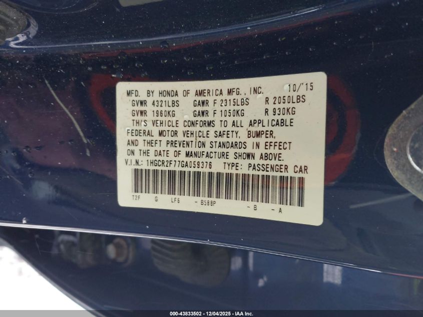 2016 HONDA ACCORD EXL