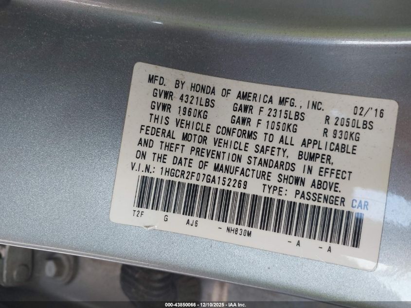 Колір СрібнийЦиліндри 4Привід Передній привідVIN 1HGCR2F07GA152269Стан Заводиться та їде (перевірено)Ушкодження Права сторона AutoRIA