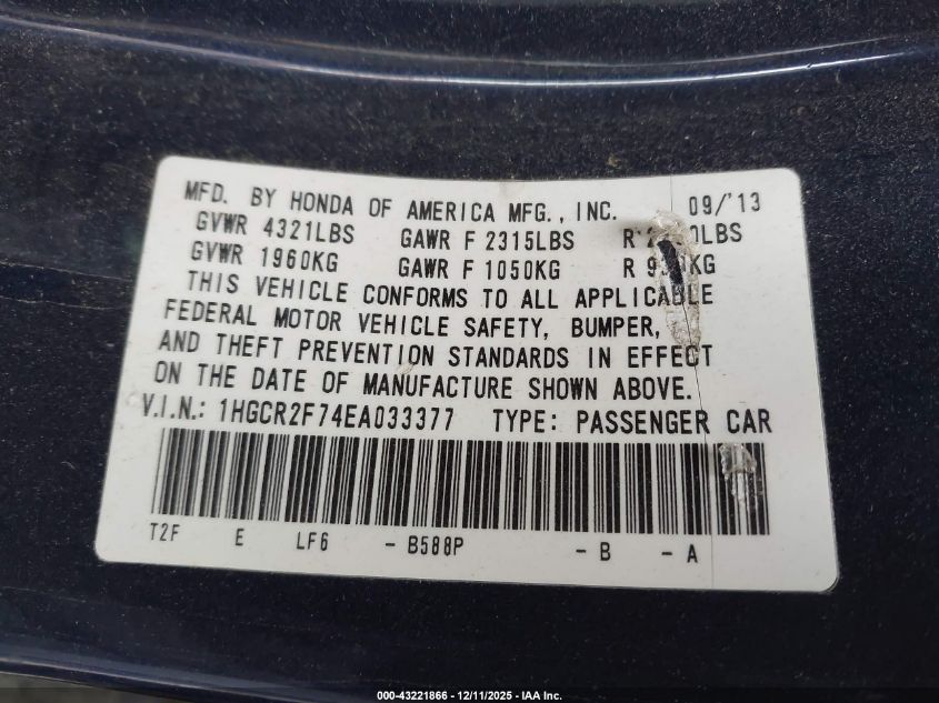 2014 HONDA ACCORD 2014 року Бензин, 2.4, Передній привід, vin - 1HGCR2F74EA033377 з США