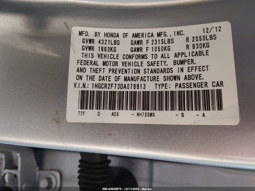 2013 HONDA ACCORD 2013 року Бензин, 2.4, Передній привід, vin - 1HGCR2F73DA079913 з США