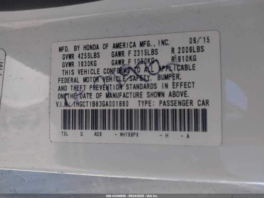 2016 HONDA ACCORD 2016 року Бензин, 2.4, Передній привід, vin - 1HGCT1B83GA001890 з США