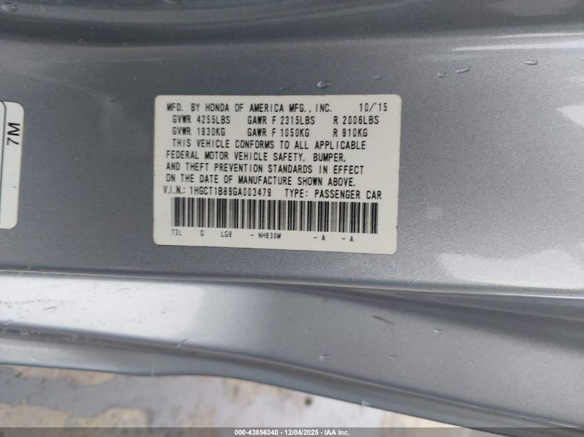 2016 HONDA ACCORD 2016 року Бензин, 2.4, Передній привід, vin - 1HGCT1B89GA003479 з США