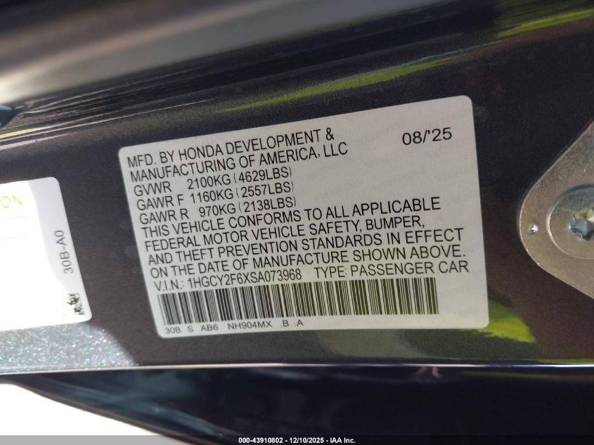 2025 HONDA ACCORD 2025 року Гібрид, 2.0, Передній привід, vin - 1HGCY2F6XSA073968 з США