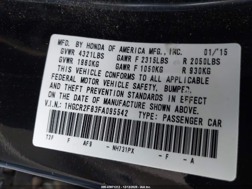 2015 HONDA ACCORD 2015 року Бензин, 2.4, Передній привід, vin - 1HGCR2F83FA095542 з США