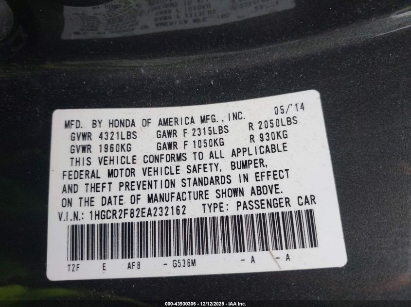 2014 HONDA ACCORD 2014 року Бензин, 2.4, Передній привід, vin - 1HGCR2F82EA232162 з США