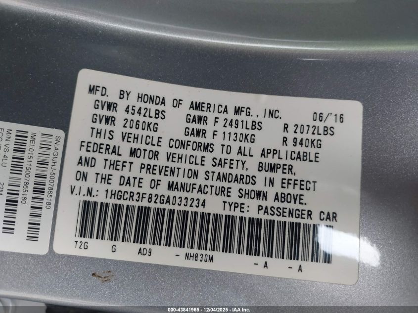 2016 HONDA ACCORD 2016 року Бензин, 3.5, Передній привід, vin - 1HGCR3F82GA033234 з США