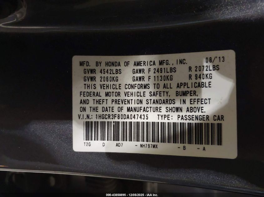 2013 HONDA ACCORD 2013 року Бензин, 3.5, Передній привід, vin - 1HGCR3F80DA047435 з США