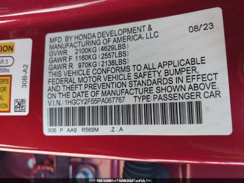 Колір БордовийЦиліндри 4Привід Передній привідVIN 1HGCY2F55PA067767Стан СтаціонарноУшкодження Передня або задняДата аукціону 2025-12-10 AutoRIA